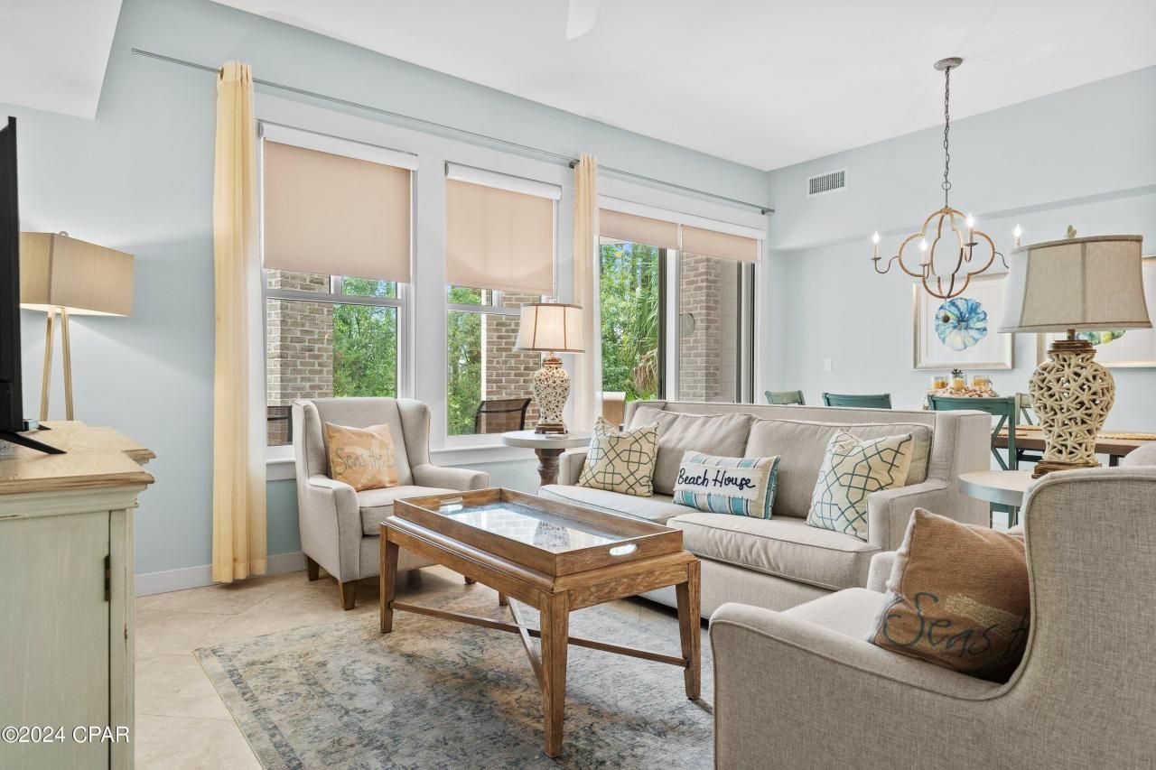 Embrace a coastal lifestyle built around flexibility and bayfront charm in this modern 2-bedroom, 3-bathroom ground-floor condominium, ideally located just a short stroll from the energy and entertainment of Baytowne Wharf and framed by views of Choctawhatchee Bay. Designed with a versatile lockout layout, this residence offers the unique ability to function as a full 2-bedroom retreat or be separated into a 1-bedroom and studio-creating multiple options for personal use, guest accommodations, or rental flexibility. Step onto your private, covered balcony and enjoy gentle bay breezes and convenient lawn access, perfect for morning coffee, sunset wind-downs, or an easy walk to the resort grounds. Inside, the interior features clean, modern design and thoughtful finishes that balance comfort with coastal style, creating a space that feels equally suited for relaxed living and hosting visitors. Residents of Bahia enjoy access to the beautifully landscaped Grand Gardens and a resort-style pool, while the vibrant Village of Baytowne Wharf offers a lively mix of boutique shopping, dining, art galleries, and year-round entertainment. . . all just steps from your door. Whether you're seeking a personal coastal escape, a property that adapts to changing needs, or a smart investment with built-in versatility, this condo delivers a rare combination of location, flexibility, and lifestyle appeal in one of the area's most dynamic coastal communities. It's the kind of place that works for how you live and how you invest.